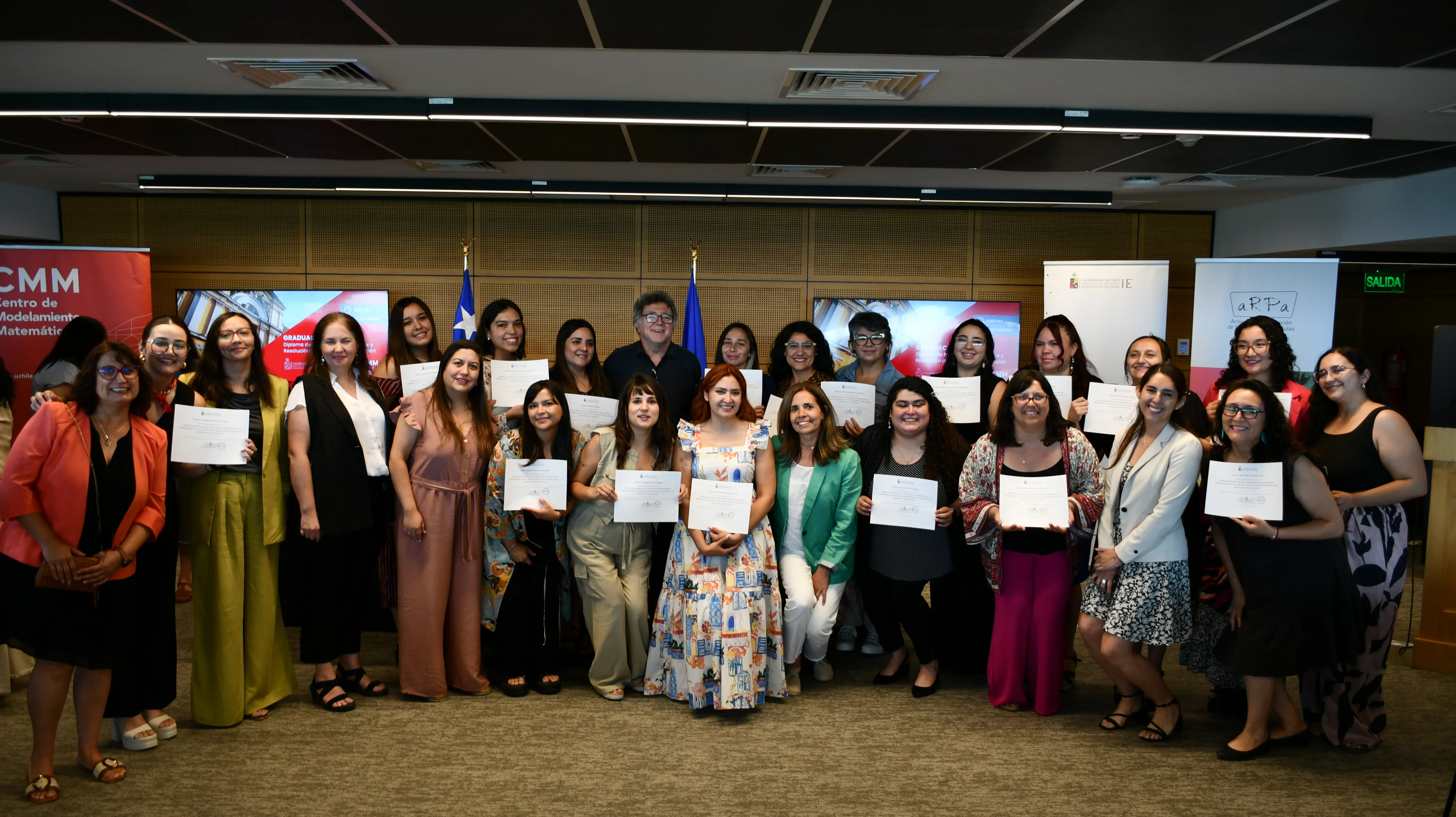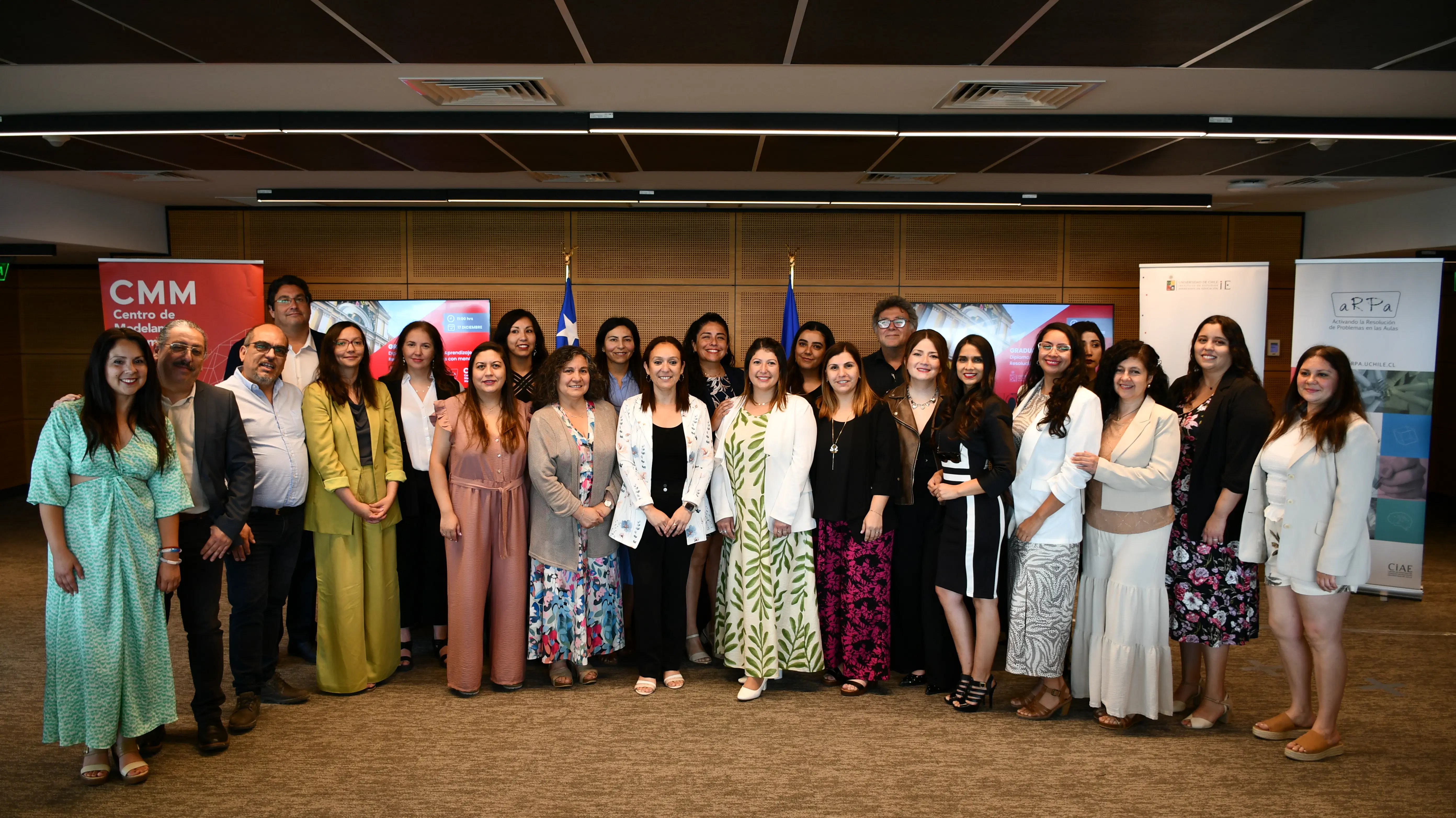 Con una emotiva ceremonia realizada el miércoles 17 de diciembre, la Universidad de Chile y la Iniciativa ARPA celebraron la graduación del Diploma de Postítulo en Aprendizaje y Resolución de Problemas en Educación Parvularia y Escolar, instancia que certificó a 32 docentes, profesionales del Programa de Integración Escolar (PIE) y equipos directivos de SIP Red de Colegios y del Colegio Entre Valles de Villa Alemana.